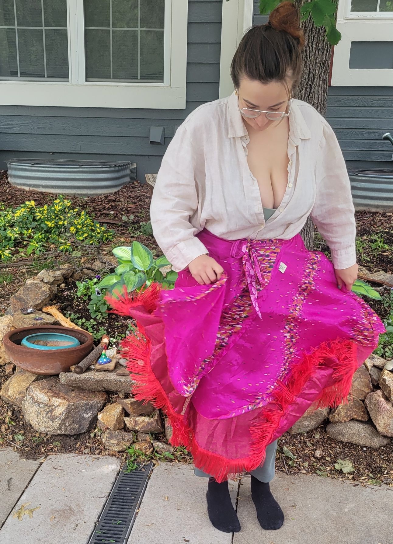 The skirt that my friend helped me sew fringe onto. Part of the regalia for SunDance.