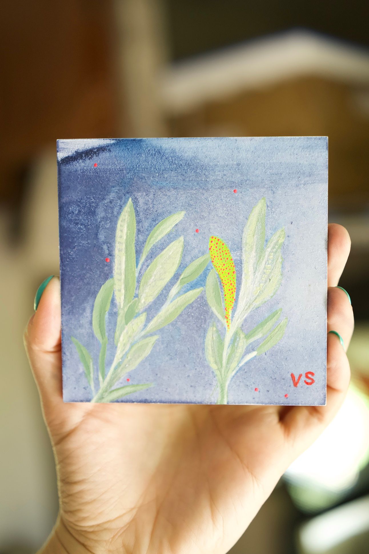 Yesterday, I cracked a bit of a formula for what I’m going to make on the road. Check the pics below for my first iteration. I like it. Let me know what you think. It’s cute and delicate. I get to use the cyanotype process and paint at the same time. I was in this camping spot since June 2nd (9 days), and it took me about that long to get this idea together.