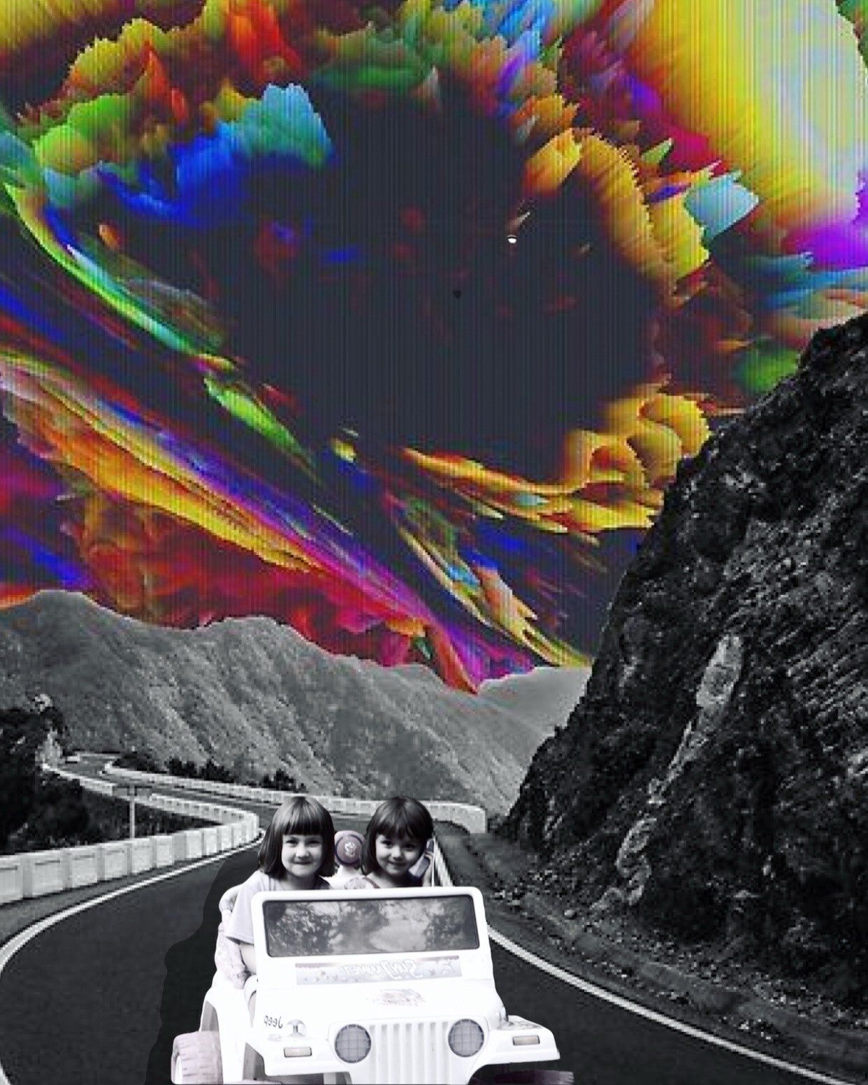 We’re gonna be okay. My sister and I in our Barbie Jeep. Collage by my sister.